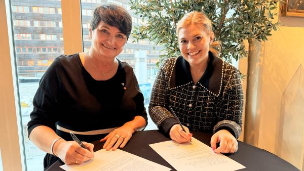 Fylkesordfører Kristina Torbergsen og Mona Benjaminsen, rådsleder i Tromsøregionens interkommunale politiske råd (IPR), signerte Tromsvekstavtalen for Tromsøregionen under Nord...