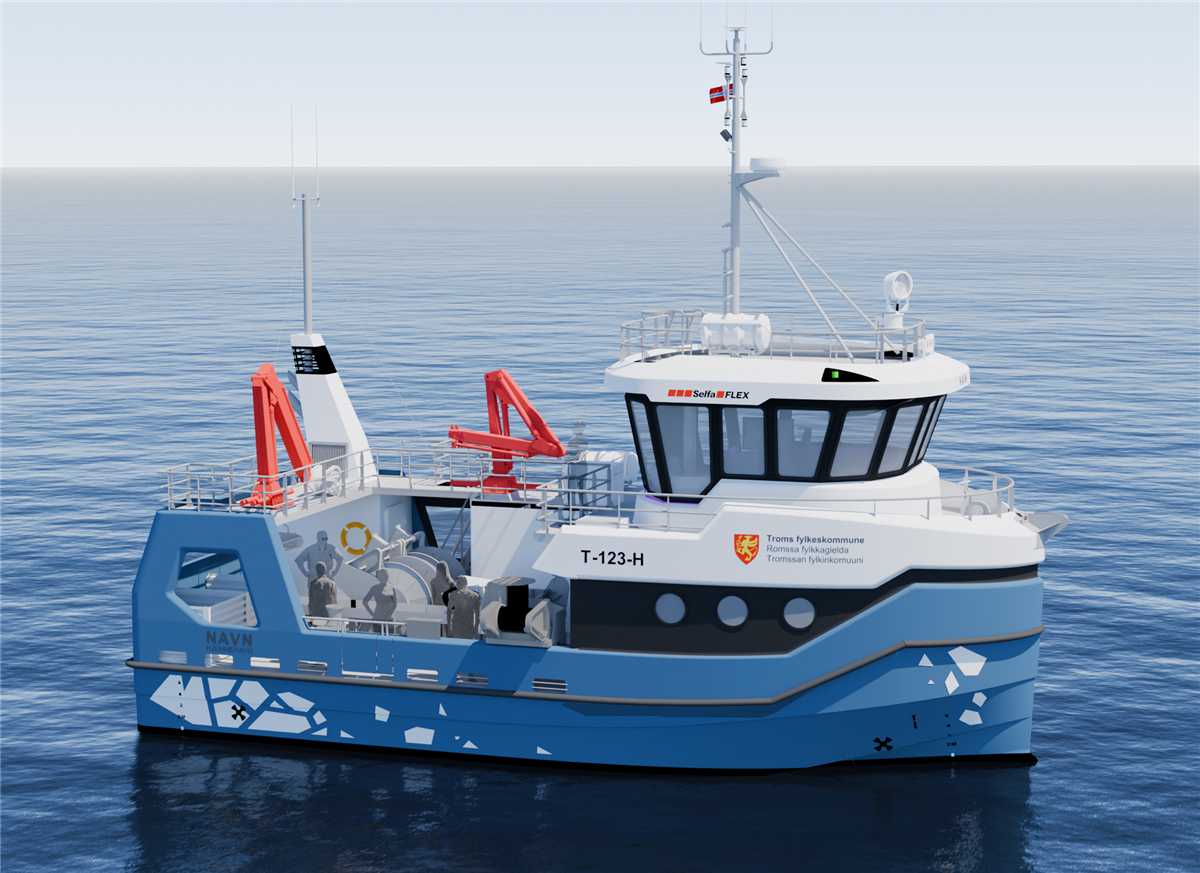Dette er en tegning av Nord-Troms vgs sitt kommende undervisningsfartøy.