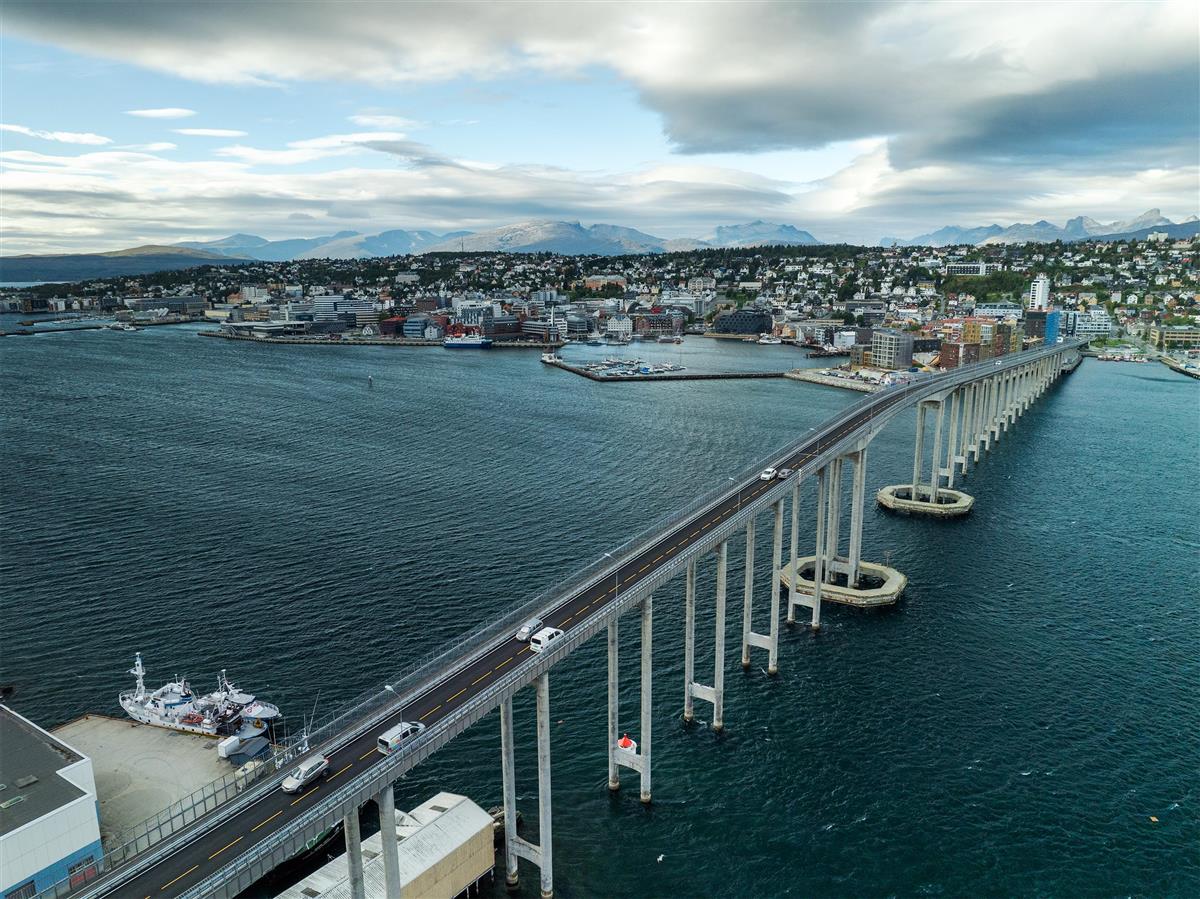 Tromsøbrua sett fra oven.