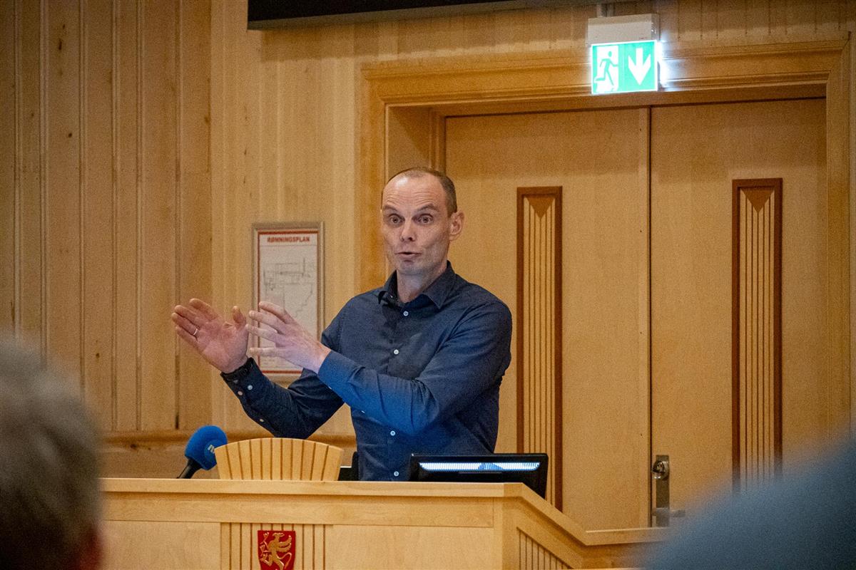 Vei og kollektiv Onsdag var det tid for fylkestingets spørsmålsrunde. Fylkesordfører Kristina Torbergsen svarte ut totalt 10 spørsmål, hvorav mange omhandlet vei og kollektivtransport. Publisert 18.03.2026 16.41 Sist endret 18.03.2026 16.41 Representant Toralf Heimdal hadde et firedelt spørsmål vedrørende etableringen av ny Brandmo bru på fylkesveg 87. Victor Omma/Troms fylkeskommune Spørsmål og svar Under kan du lese alle spørsmålene som ble stilt, og fylkesordfører Kristina Torbergsens svar. Bagasje på bybuss i TromsøEtablering av ny Brandmo bru fv. 87Regleverk for hund på ferger og hurtigbåterRundhaug bru fv. 87Respektfull bruk av skattebetalernes pengerRush-tidsbillett for grupperSkifte av Straumen bru fv. 84 Sørreisa sentrum - som følge av Forsvarets behovFergesambandet Stornes - BjørnåGratis prøveprosjekt med gratis sanitetsprodukter i videregående skoleNår skal Troms fylkeskommune sette ned prisen på månedskort?