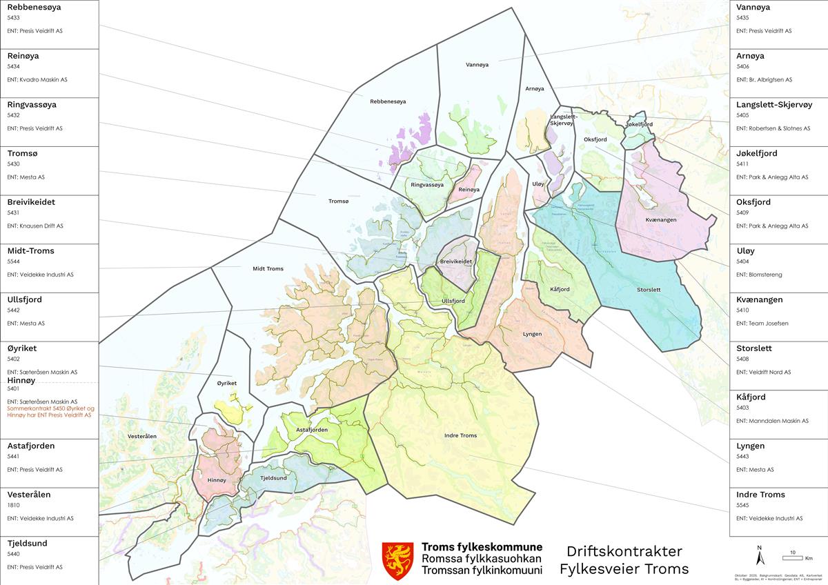 Klikk på de ulike områdene for å se hvem som har driftskontrakten på den aktuelle veien.